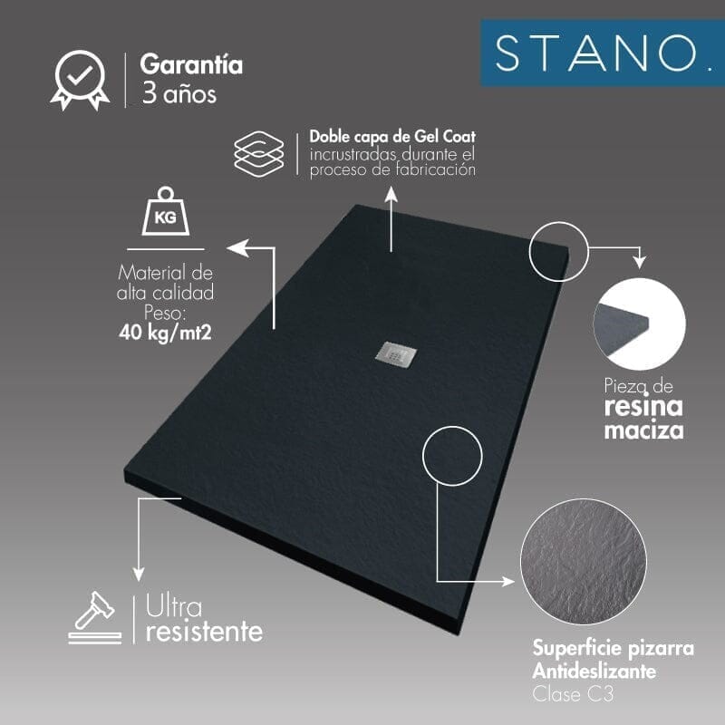 As bases de duche extraplanas em Resina são ideais para casas de banho ultramodernas e são a melhor alternativa às bases de duche em acrílico. O modelo DEXA tem o acabamento em ardósia e a grade de drenagem centralizada.