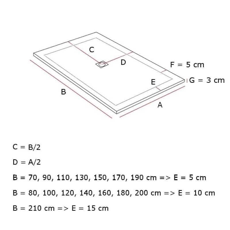 Há uma zona de 5 cm. em volta de onde não há queda, para poder instalar uma divisória de chuveiro sem problemas de ajuste.