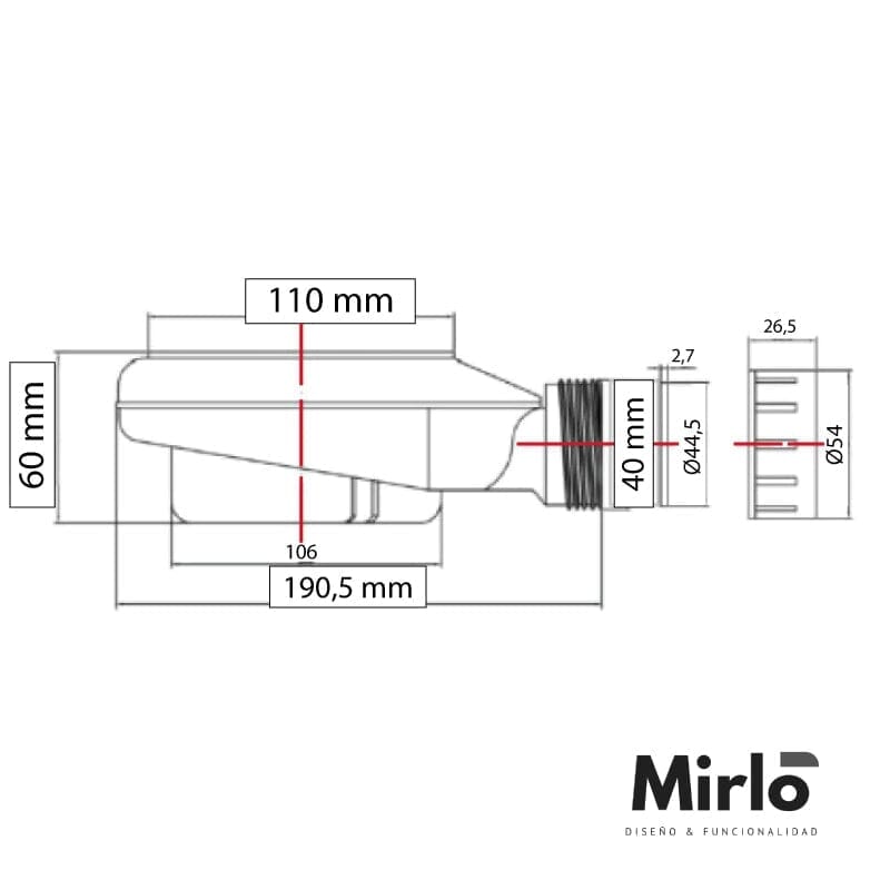 • Sifão de vazão: 45l - 50l / min a 15mm de nível de água