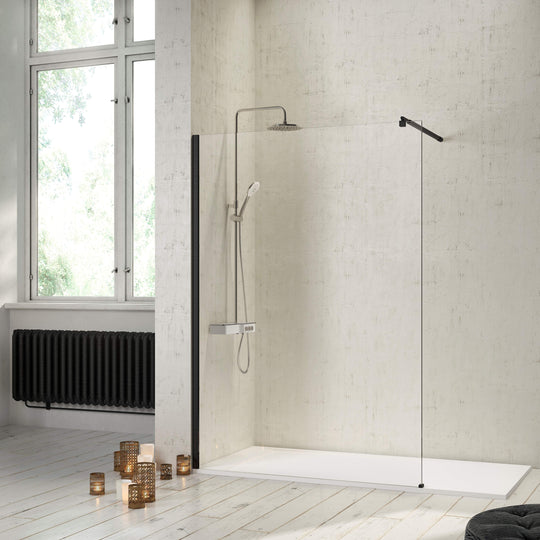 Frontal de ducha + Puerta Corredera LUNA Negro sin Decorado - Entorno Bano | Cristal Transparente_miniature