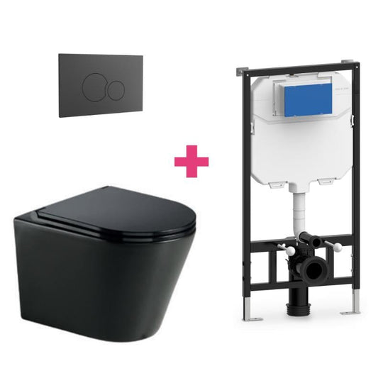 PACK TURIN sanita suspensa em cerâmica preta mate com cisterna e botão de pressão