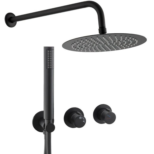 Chuveiro monocomando embutido de parede redondo TRAPA em PRETO FOSCO