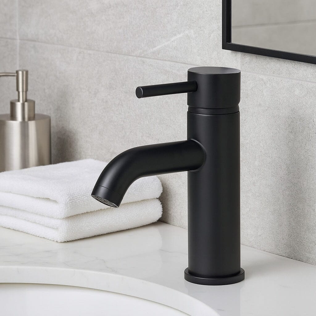 Torneira monocomando para lavatório STANO PICO preta fosca para lavatórios de estilo moderno e para banheiros de design.