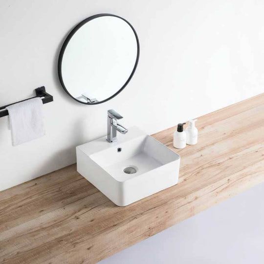 Lavatório de apoio em cerâmica branca brilhante VENADO 42 x 42,5 cm