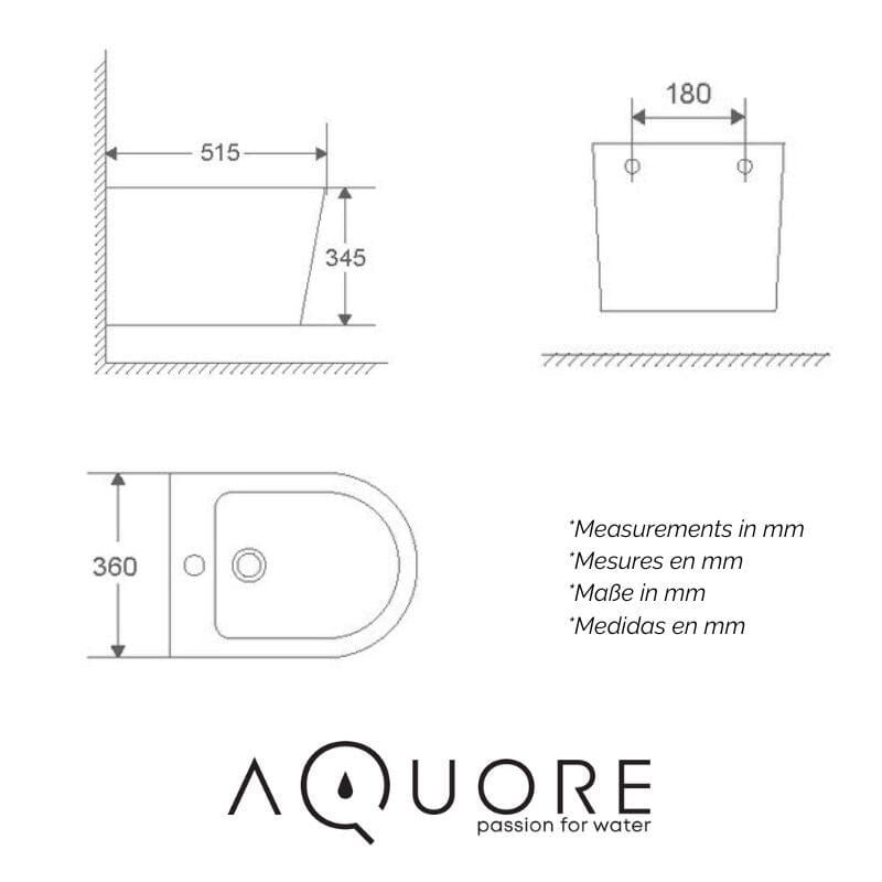 Bidé suspenso tradicional, estilo minimalista com linhas elegantes, modelo TURIN, cor branco brilhante